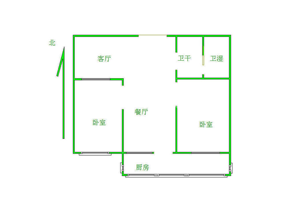 2、户型优势:2室1厅,南北卧室,客厅方正好用,单元对讲门,大院传达,安全性高!