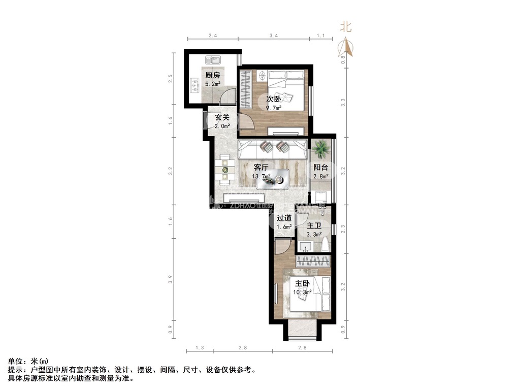 朝向南北 建筑面积68.91㎡