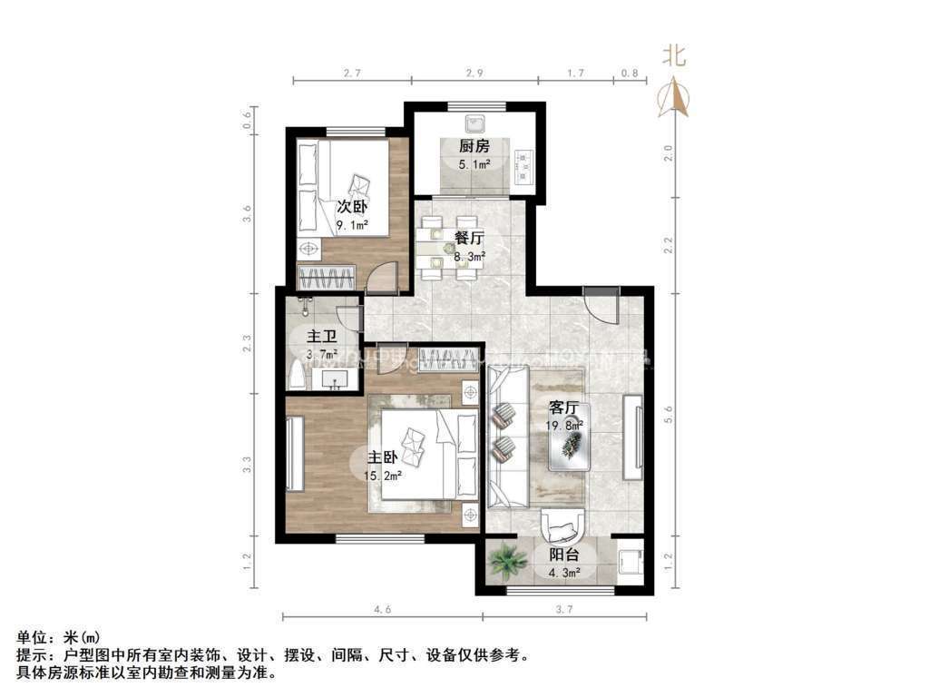 2、户型优势:2室2厅,南北卧室,客厅方正好用,单元对讲门,大院传达,安全性高!