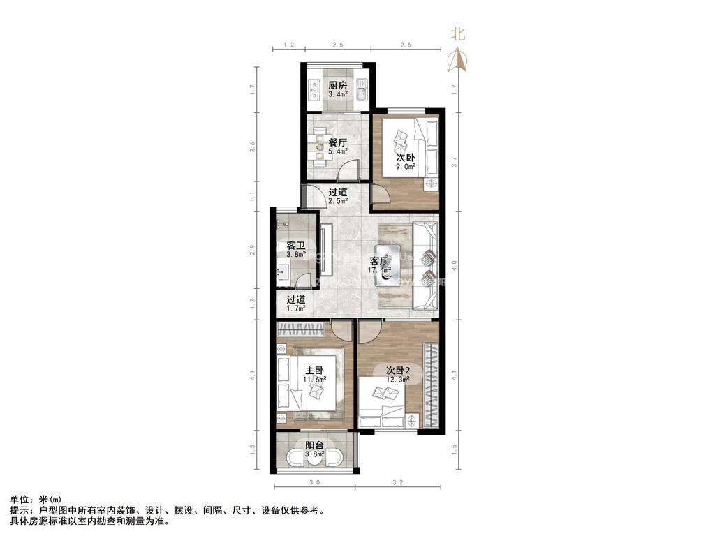 朝向南北 建筑面积100㎡