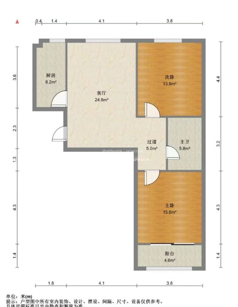 厅室2室1厅1卫1阳台