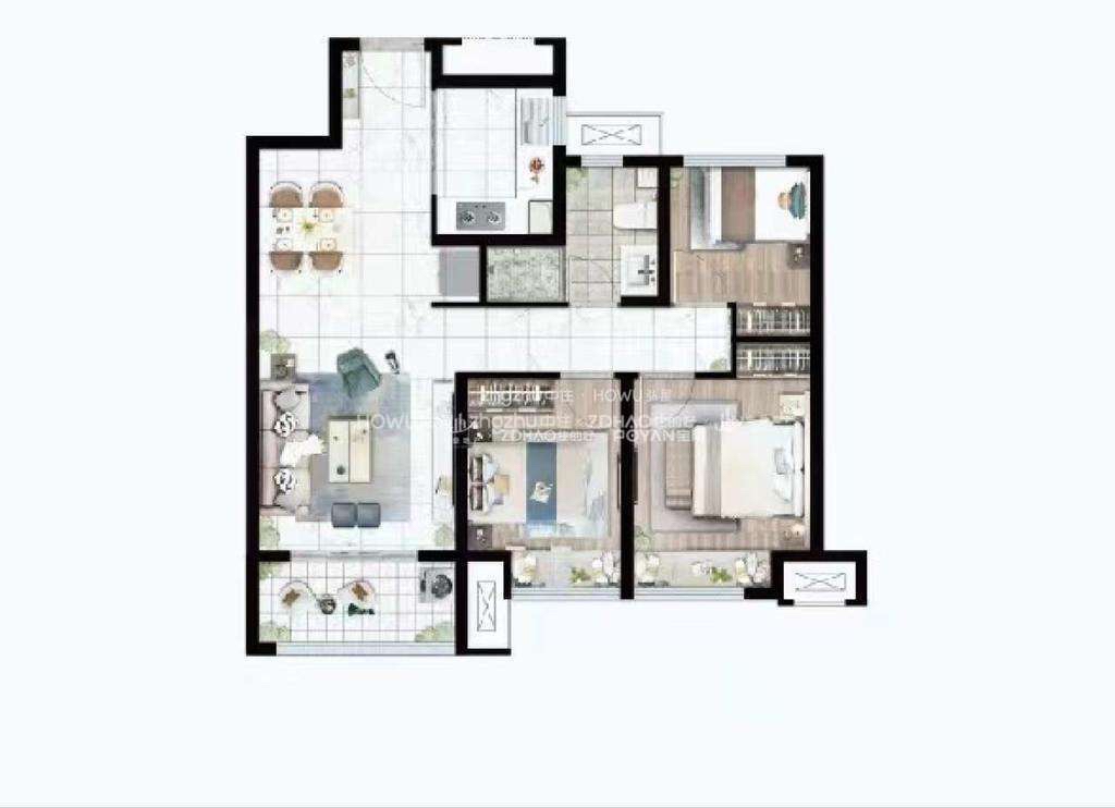 厅室3室2厅1卫1阳台