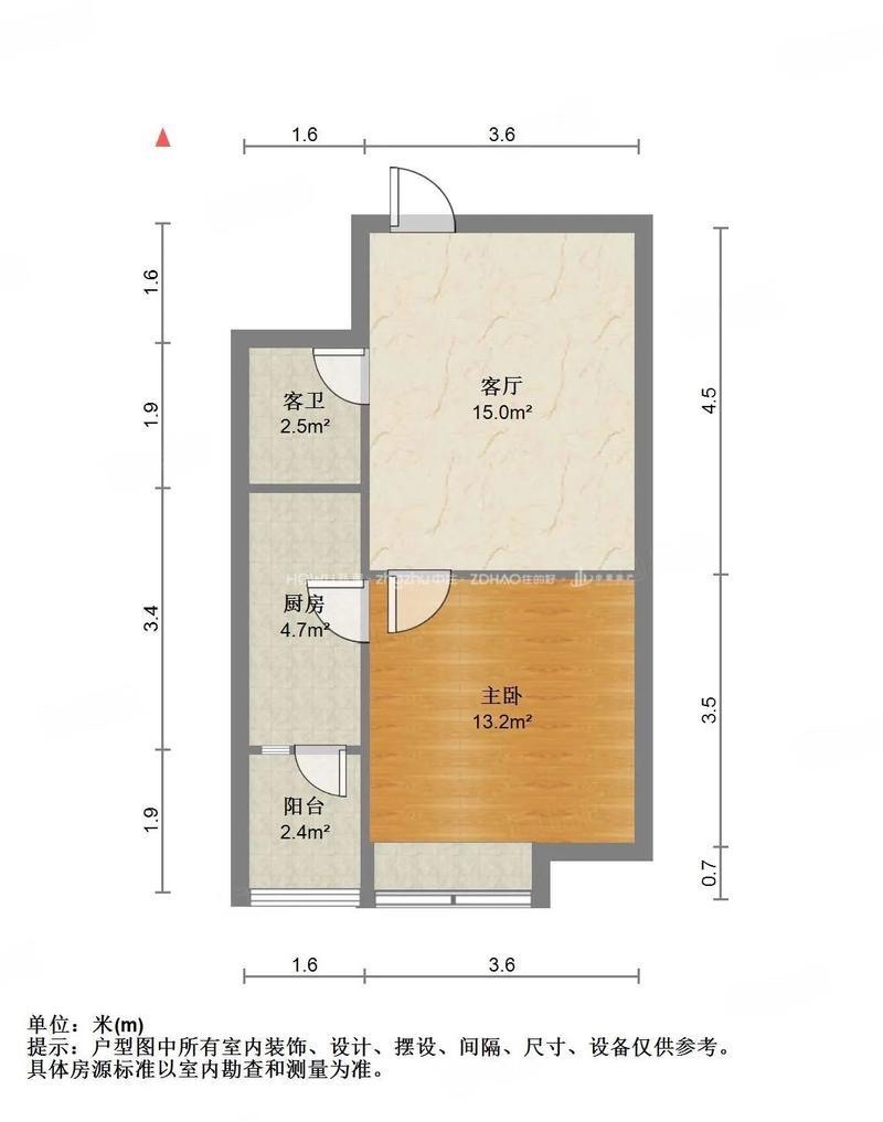 1室1厅1卫,38.8平米