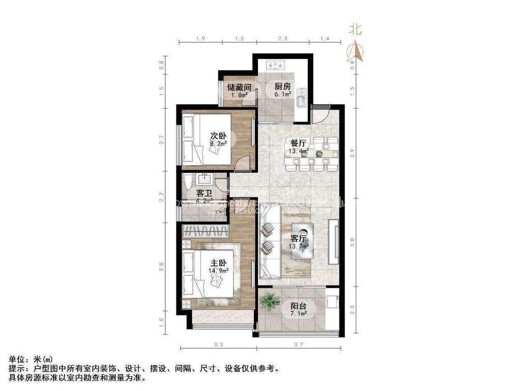 朝向南北 建筑面积99㎡