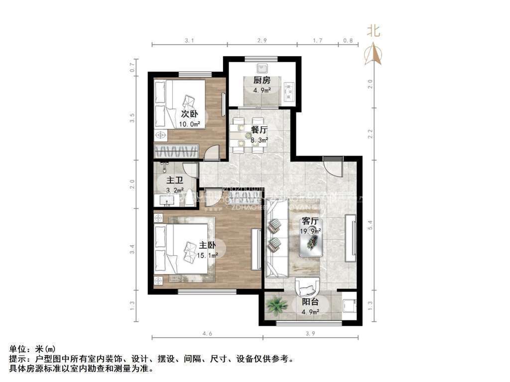 朝向南北 建筑面积93㎡