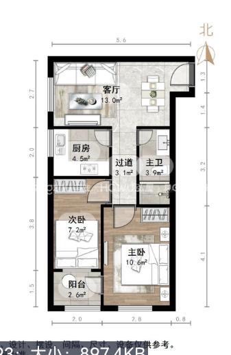 2、户型优势:2室2厅,南北卧室,客厅方正好用,单元对讲门,大院传达,安全性高!