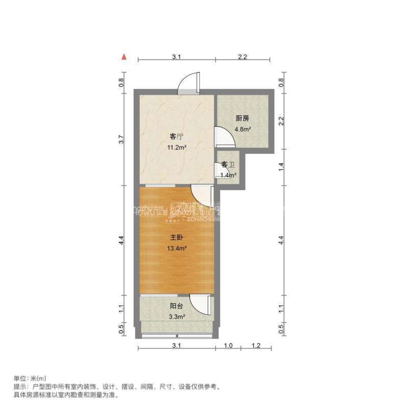厅室1室1厅1卫1阳台