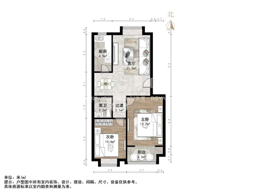 厅室2室1厅1卫1阳台