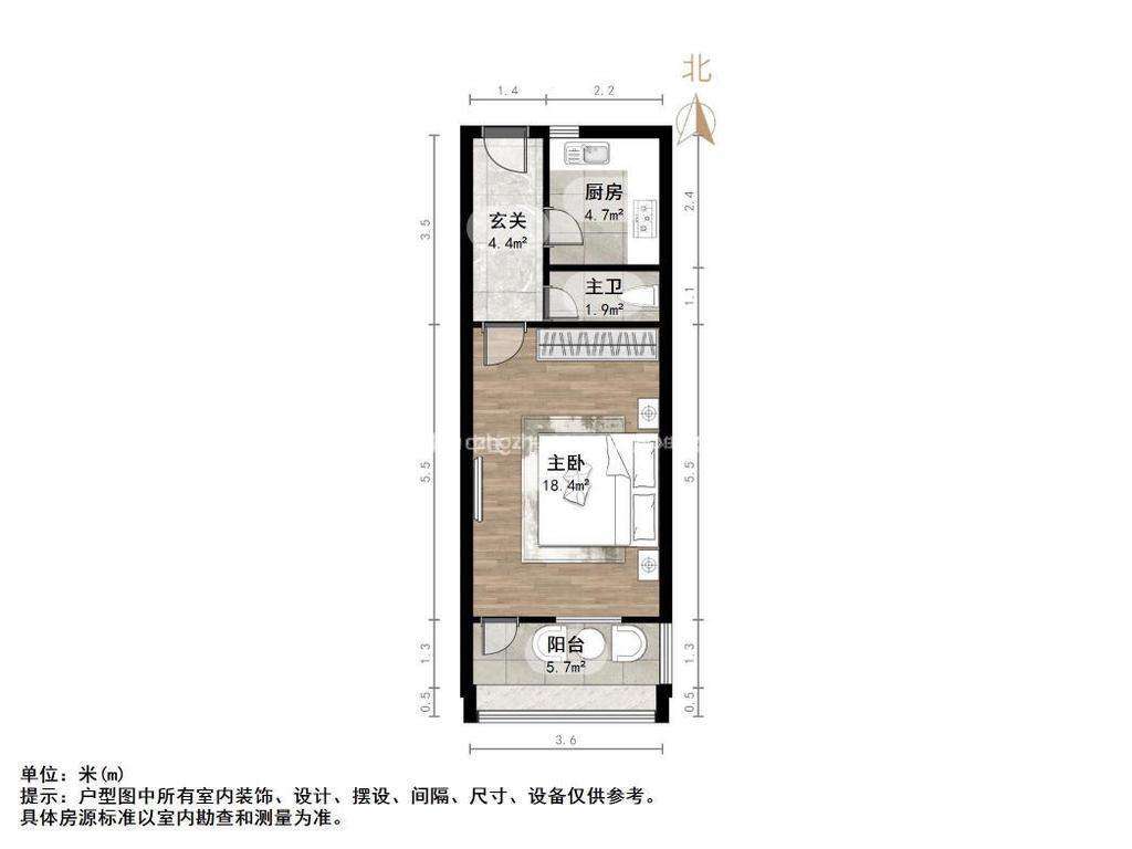 厅室1室1厅1卫1阳台