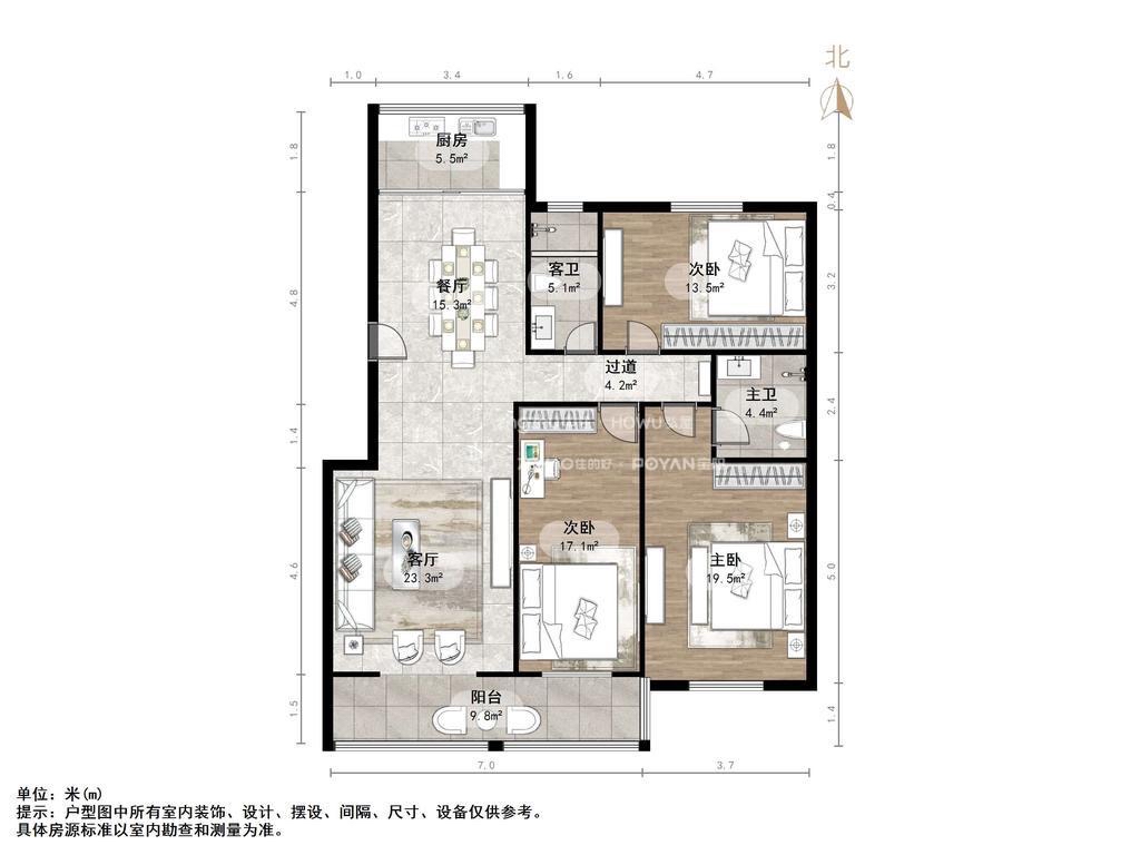 厅室3室2厅2卫1阳台