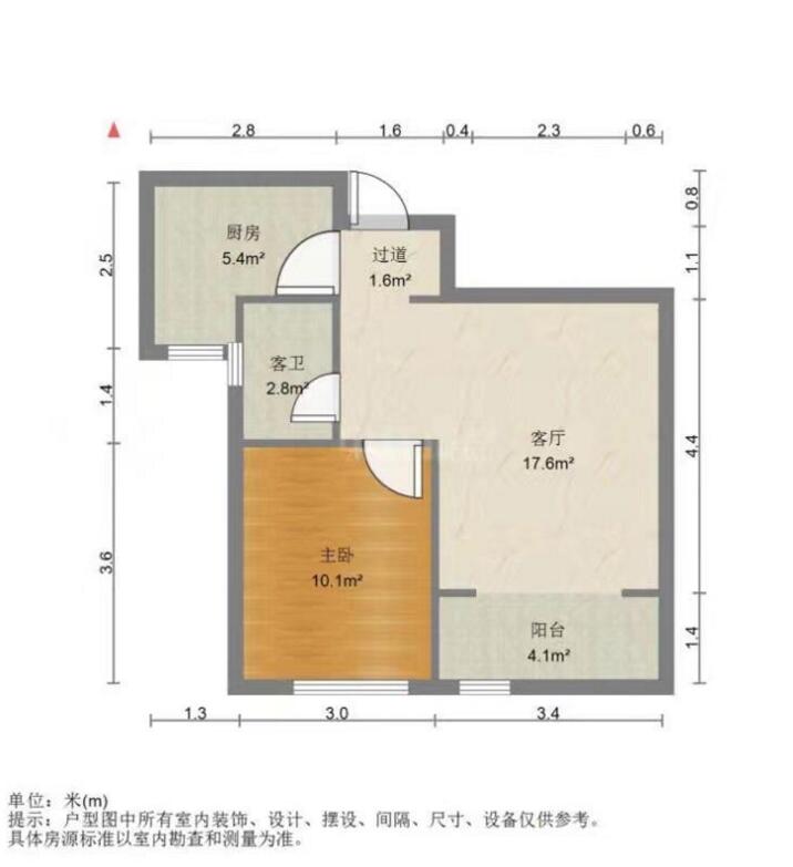 2、房源描述:一室一厅一厨一卫,全南户型,家具家电齐全,拎包入住