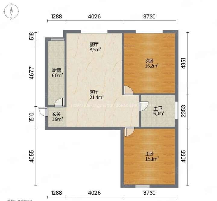 2、户型优势:2室2厅,客厅方正好用,单元对讲门,大院传达,安全性高!