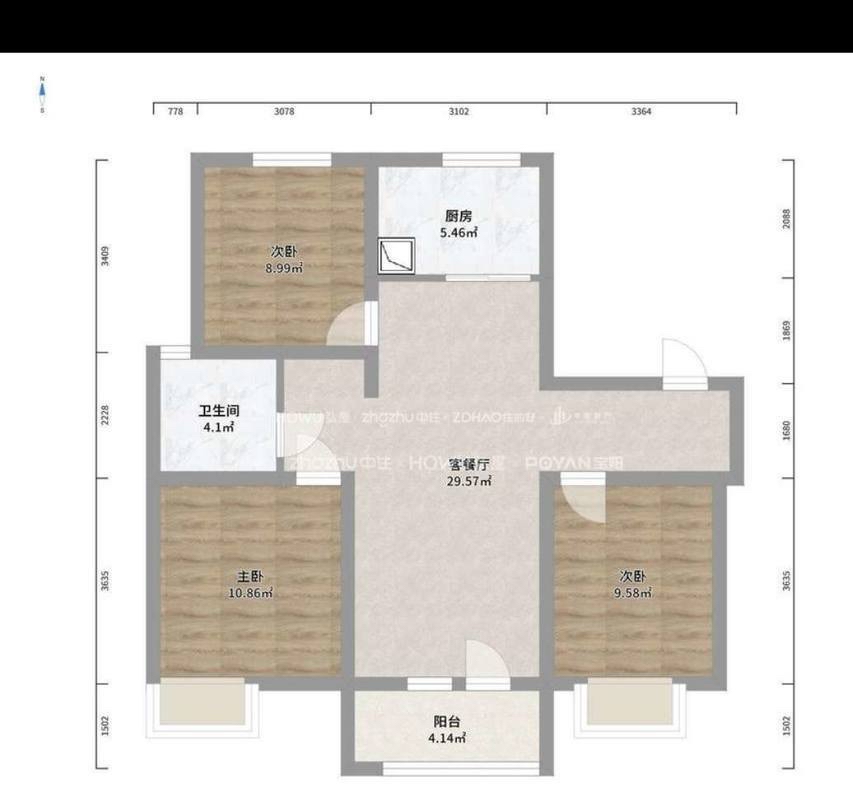 厅室3室2厅1卫1阳台