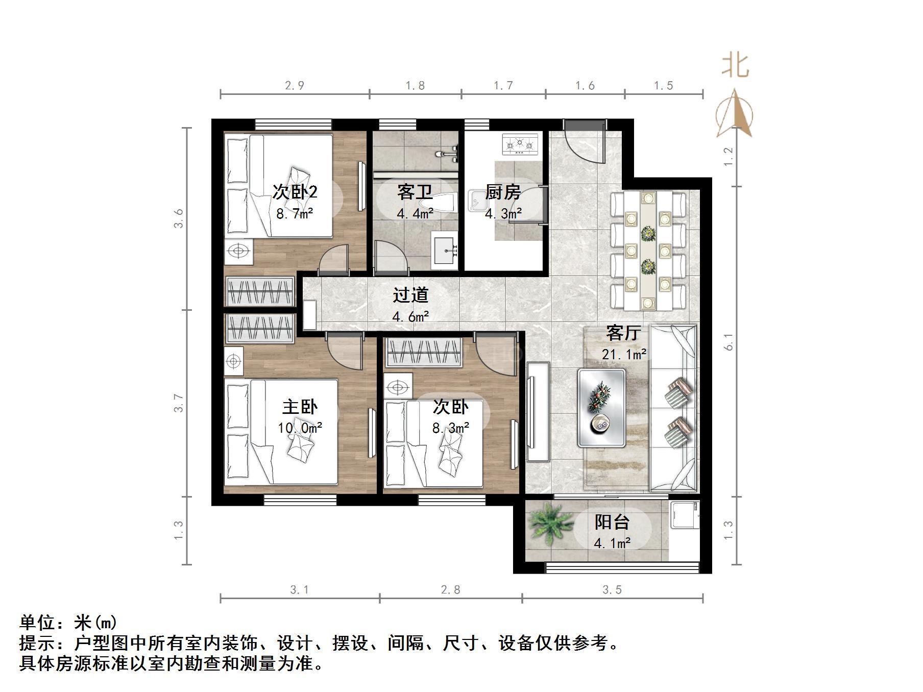 朝向南北 建筑面积99㎡