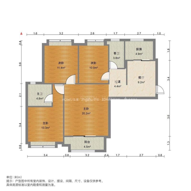 厅室3室2厅1卫1阳台