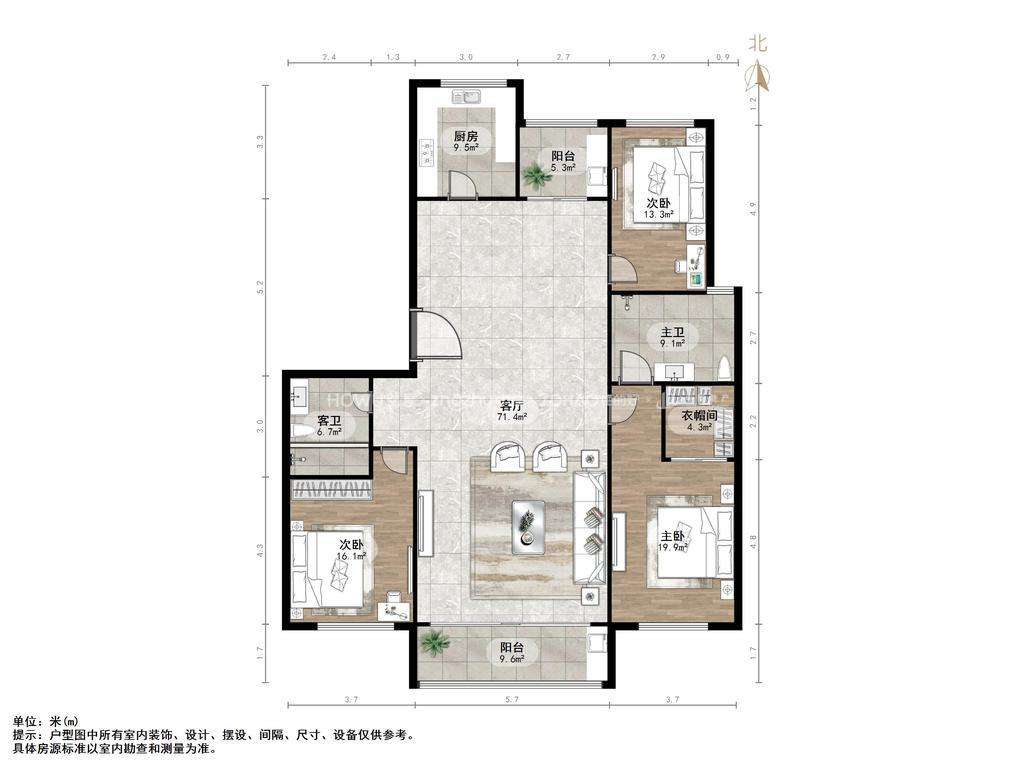 厅室3室2厅2卫1阳台