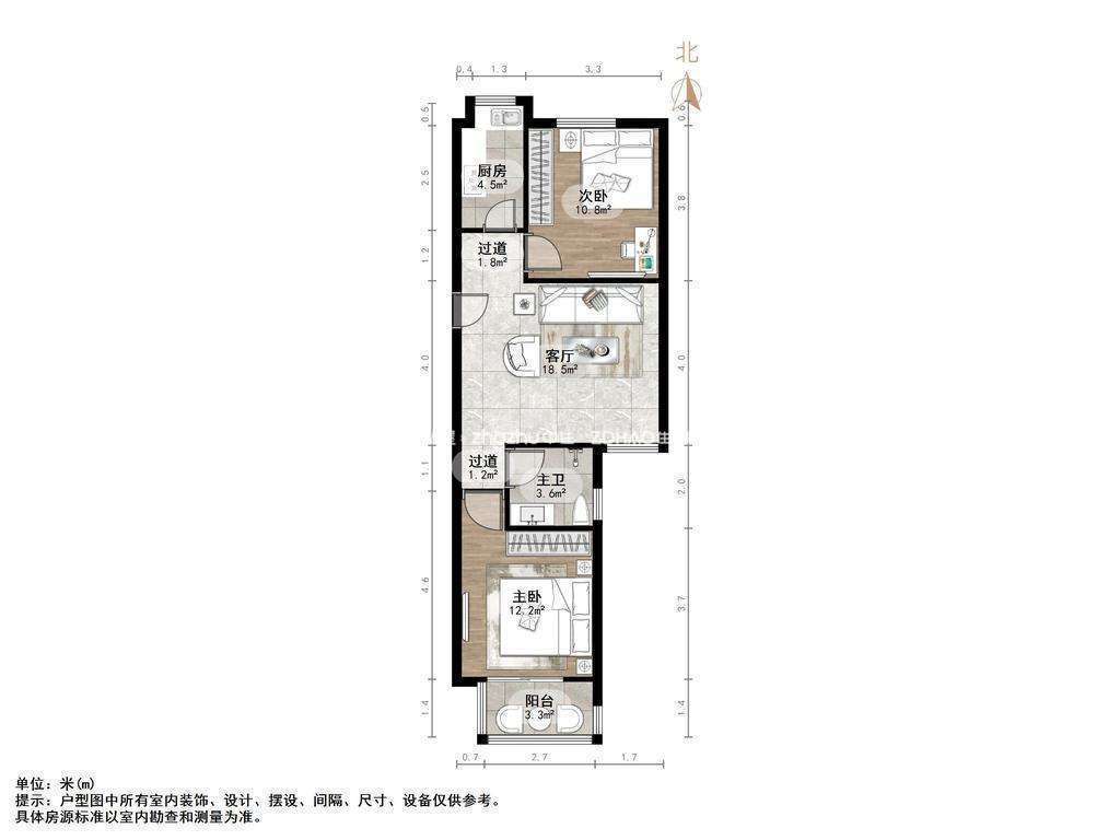 厅室2室1厅1卫1阳台