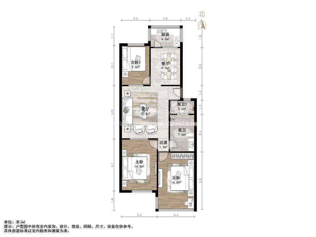 朝向南北 建筑面积110㎡