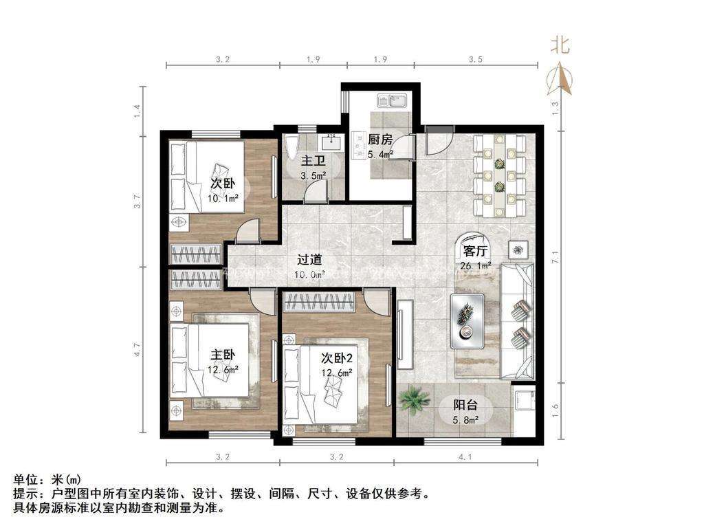朝向南北 建筑面积116㎡