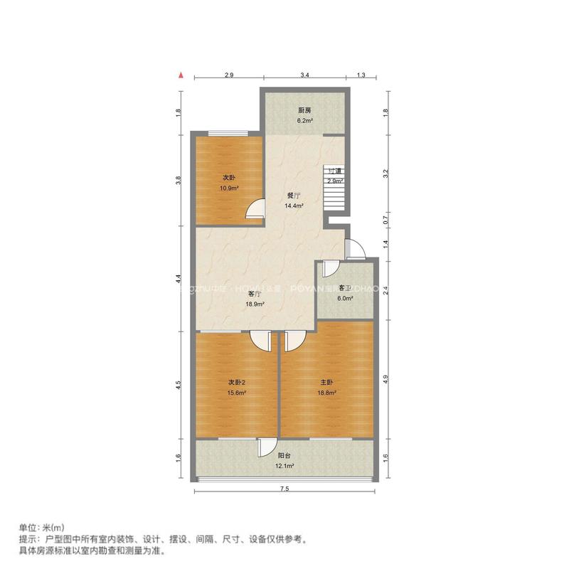 朝向南北 建筑面积121.5㎡