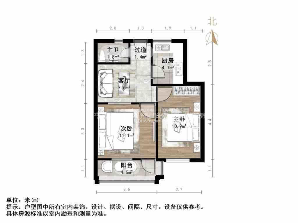 厅室2室1厅1卫1阳台