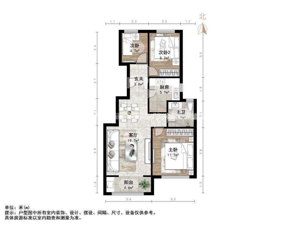 2.房子户型方正,布局合理,空间设计合理