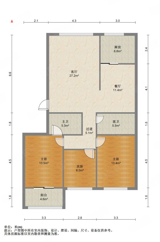 厅室3室1厅1卫1阳台