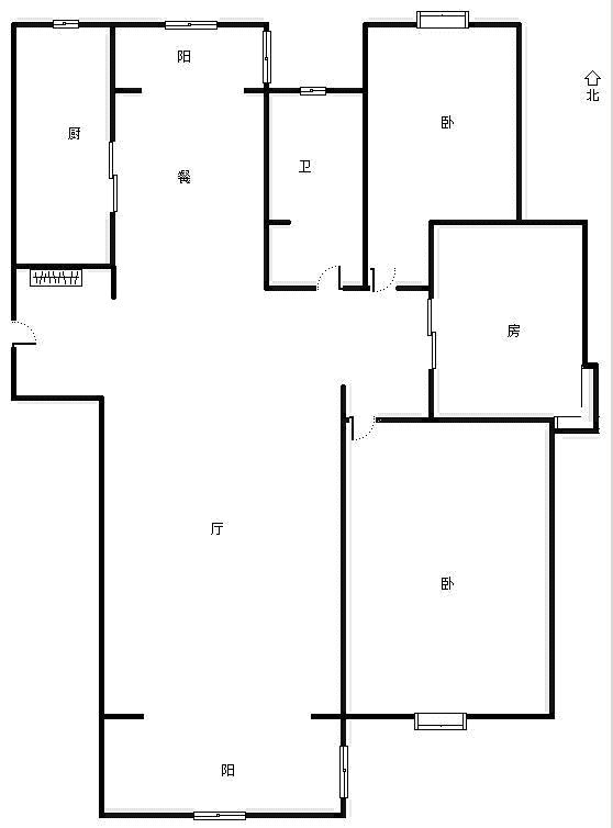 厅室3室2厅1卫1阳台