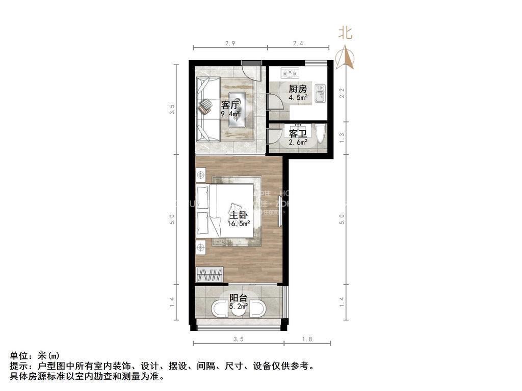 厅室1室1厅1卫1阳台