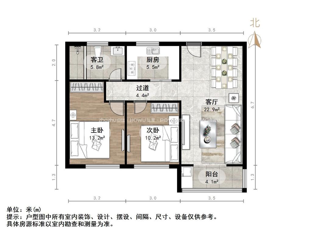 2、户型优势:南北卧室,客厅方正好用,单元对讲门,大院传达,安全性高!