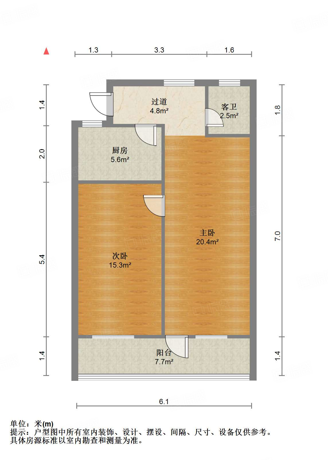 厅室2室1厅1卫1阳台