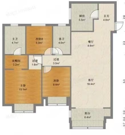 厅室3室2厅2卫1阳台