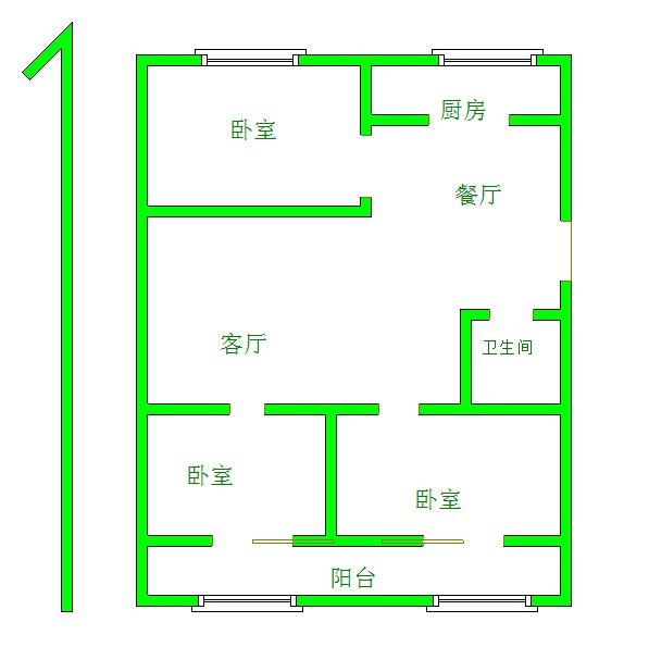 厅室3室2厅1卫1阳台