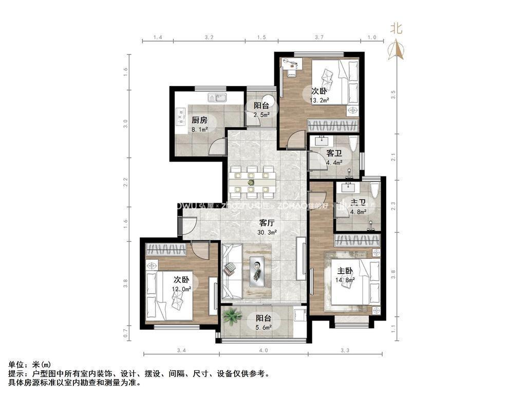 朝向南北 建筑面积128㎡