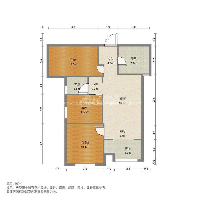 厅室3室2厅1卫1阳台