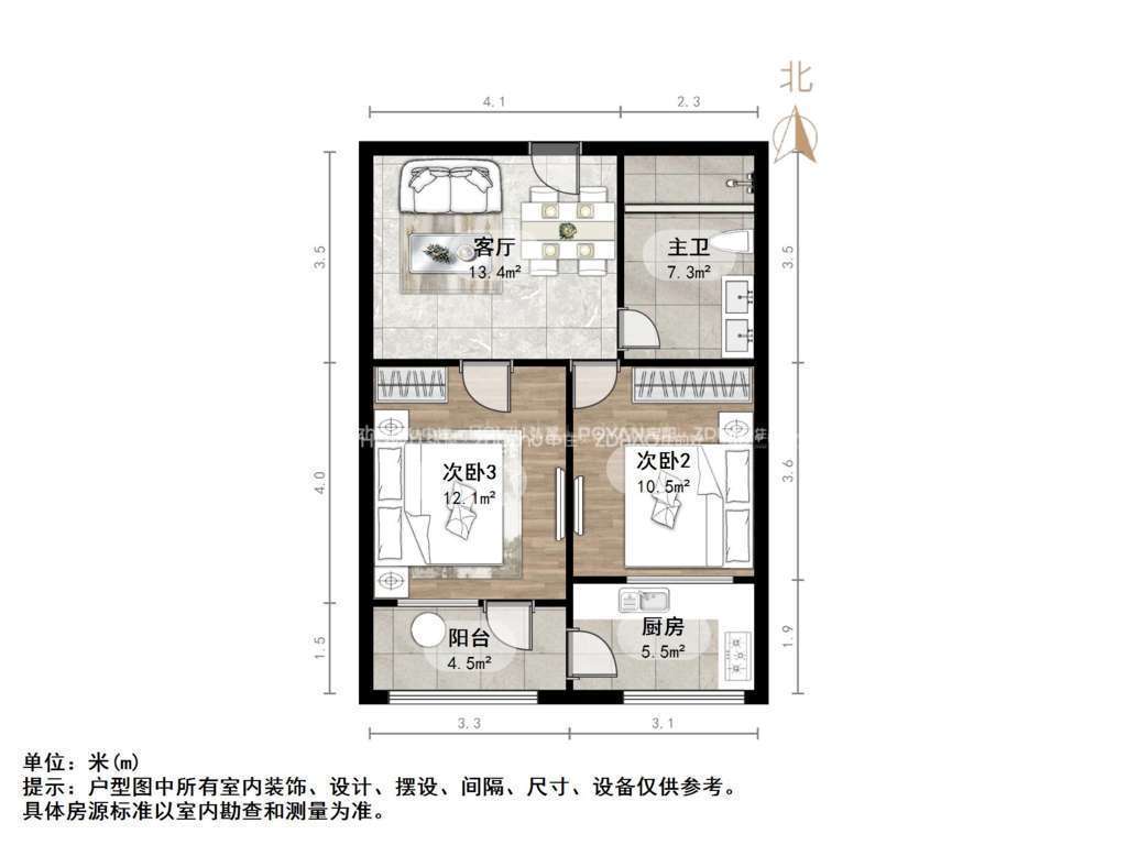 朝向南北 建筑面积70㎡
