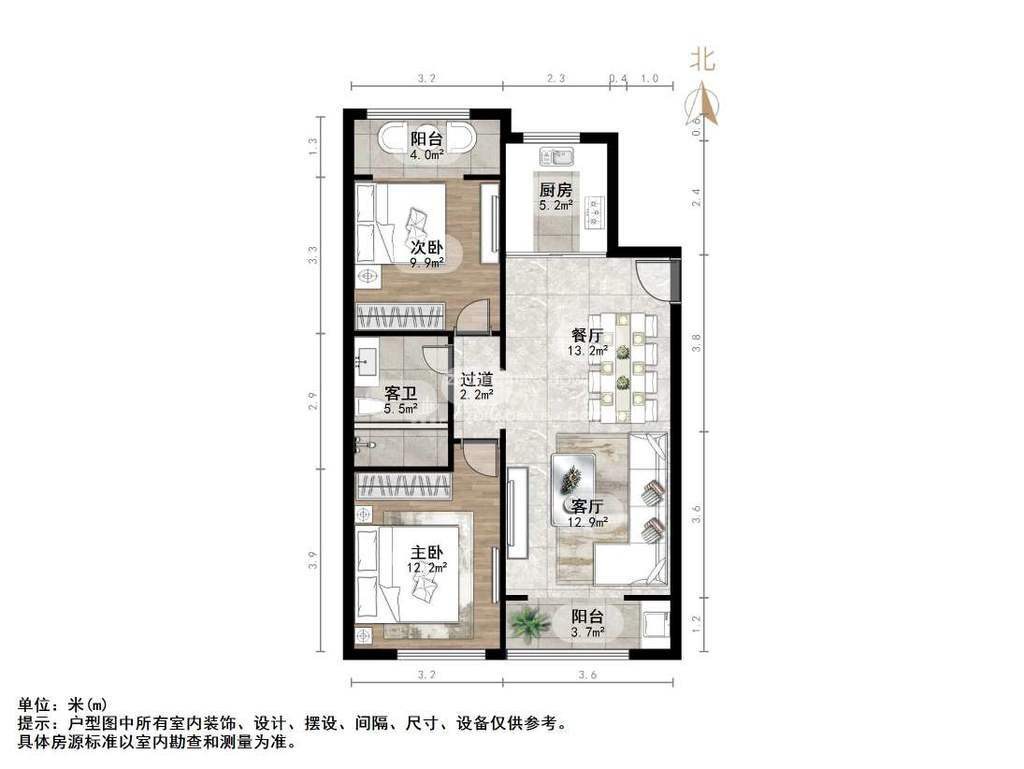 朝向南北 建筑面积101.1㎡