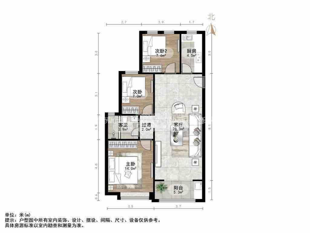 厅室3室2厅1卫1阳台
