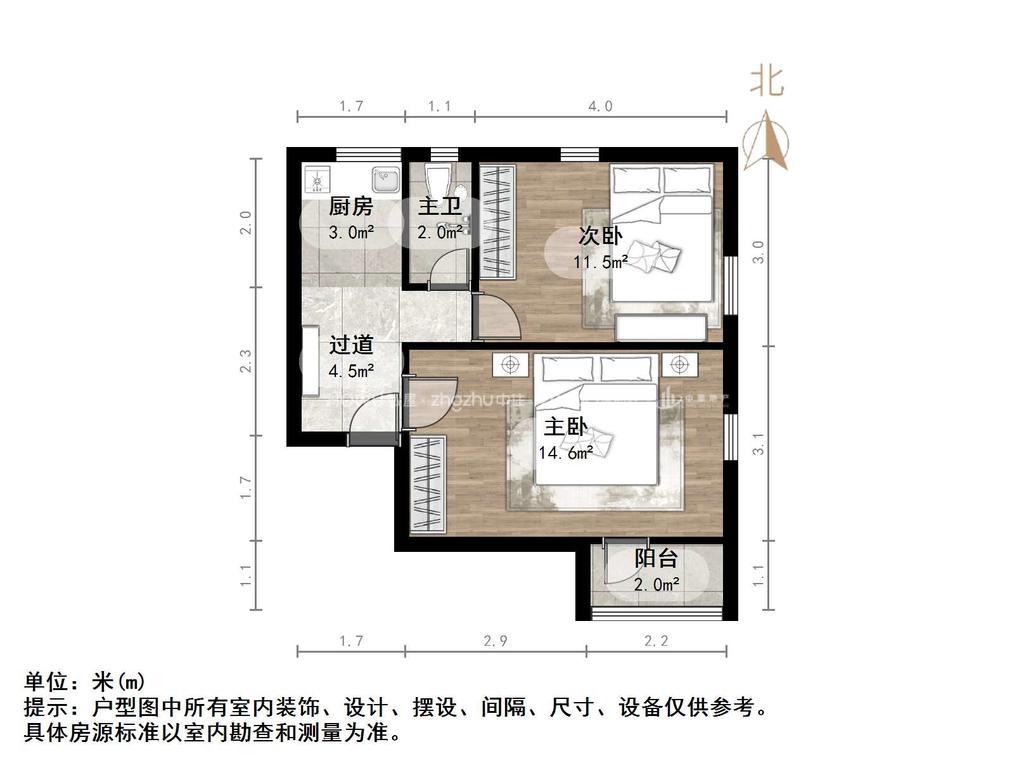 厅室2室1厅1卫1阳台