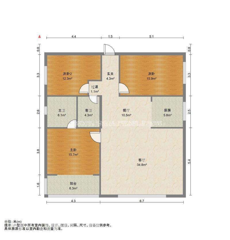 厅室3室2厅2卫1阳台