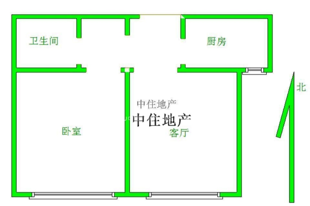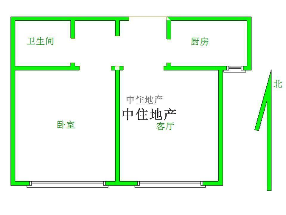 2、户型优势:1室1厅,南北卧室,客厅方正好用,单元对讲门,大院传达,安全性高!