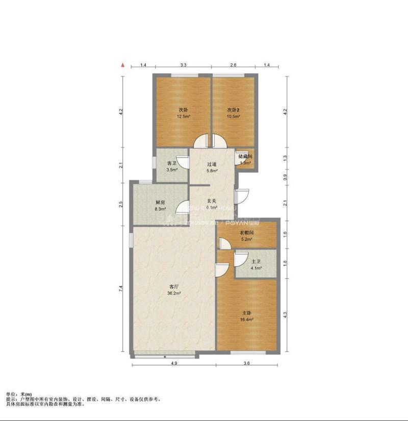 厅室3室2厅2卫1阳台