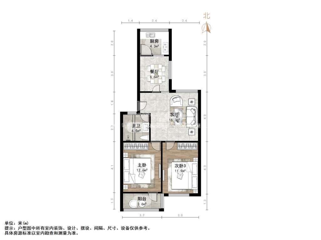 朝向南北 建筑面积85㎡