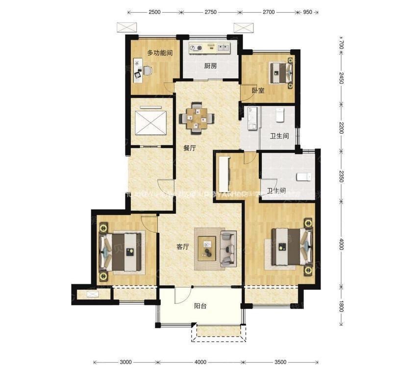 厅室4室2厅2卫1阳台