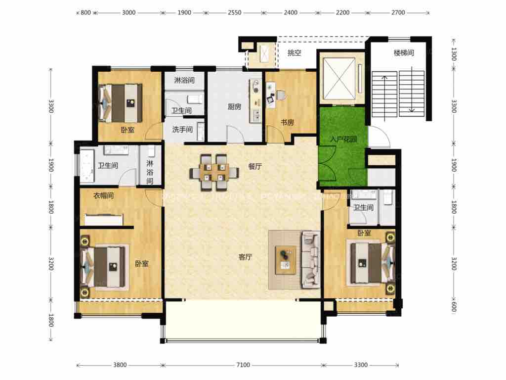 厅室3室2厅2卫1阳台