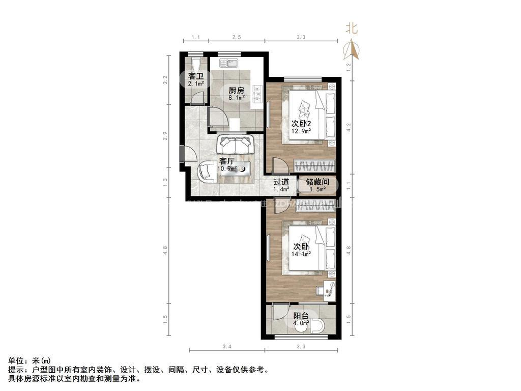 2、户型优势:两室一厅,南北卧室,客厅方正好用,单元对讲门,大院传达,安全性高!