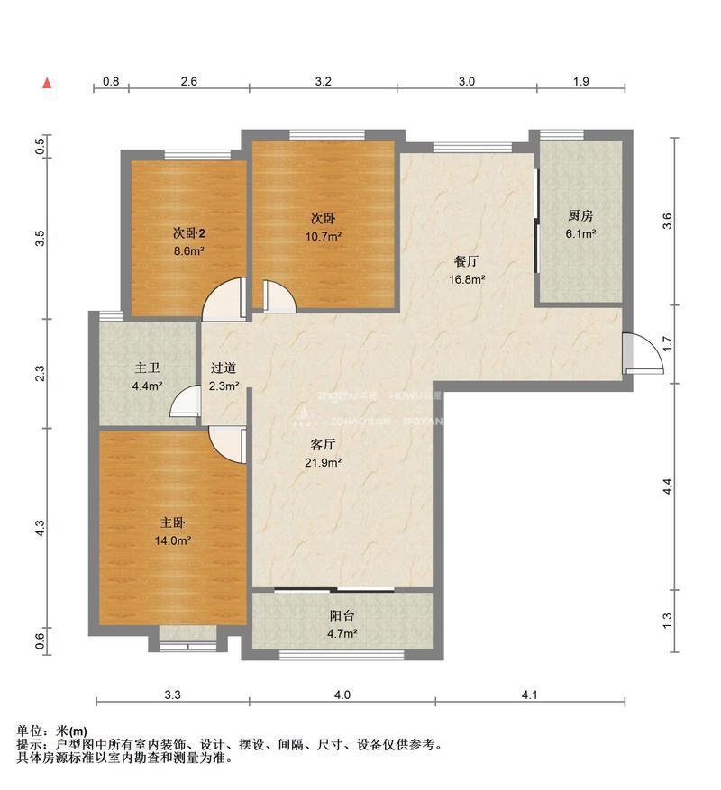 厅室3室2厅1卫1阳台