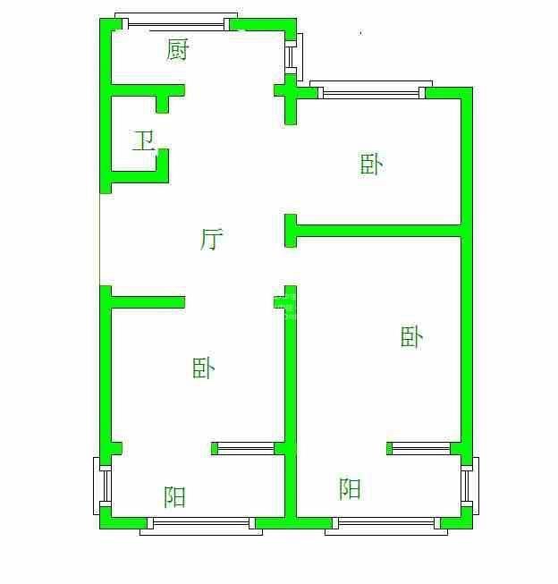 2、户型优势厅,南北卧室,客厅方正好用,单元对讲门,大院传达,安全性高!