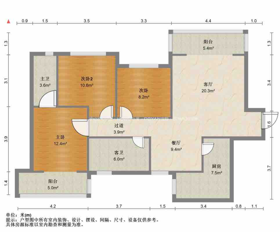 厅室3室2厅2卫1阳台