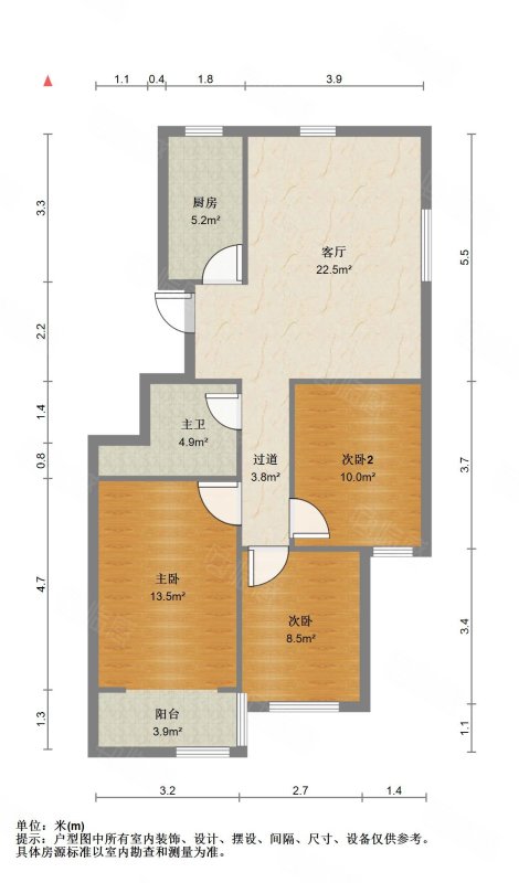 厅室3室2厅1卫1阳台